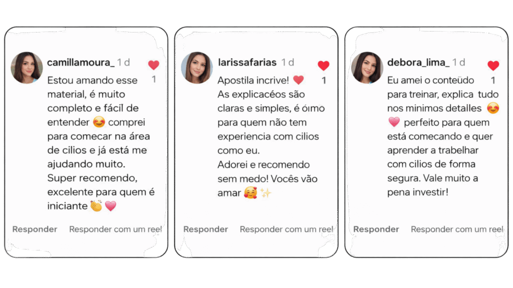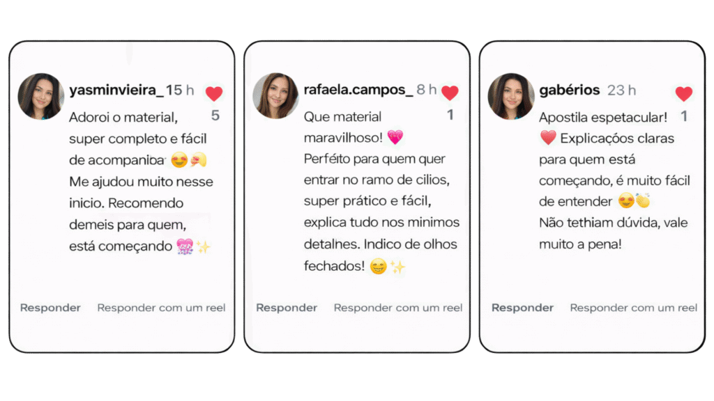 Aqui você aprende a base completa para se tornar uma lash designer segura, rápida e pronta para atender clientes de forma profissional e responsável.
