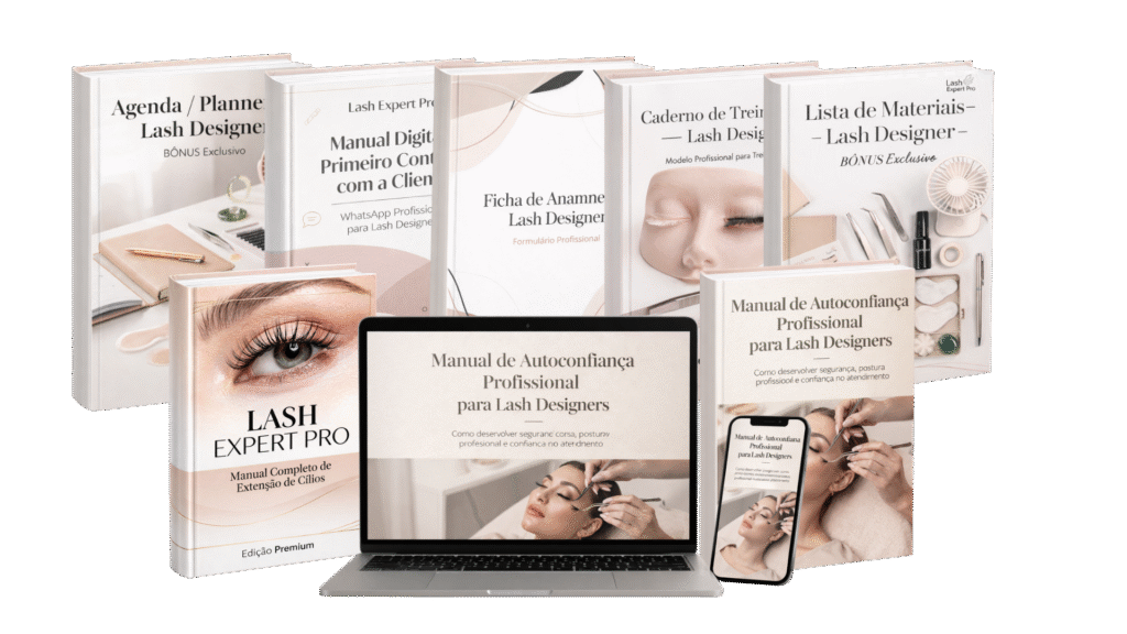 Guia completo com todos os materiais essenciais para iniciar e organizar seus atendimentos como lash designer com mais segurança e profissionalismo.